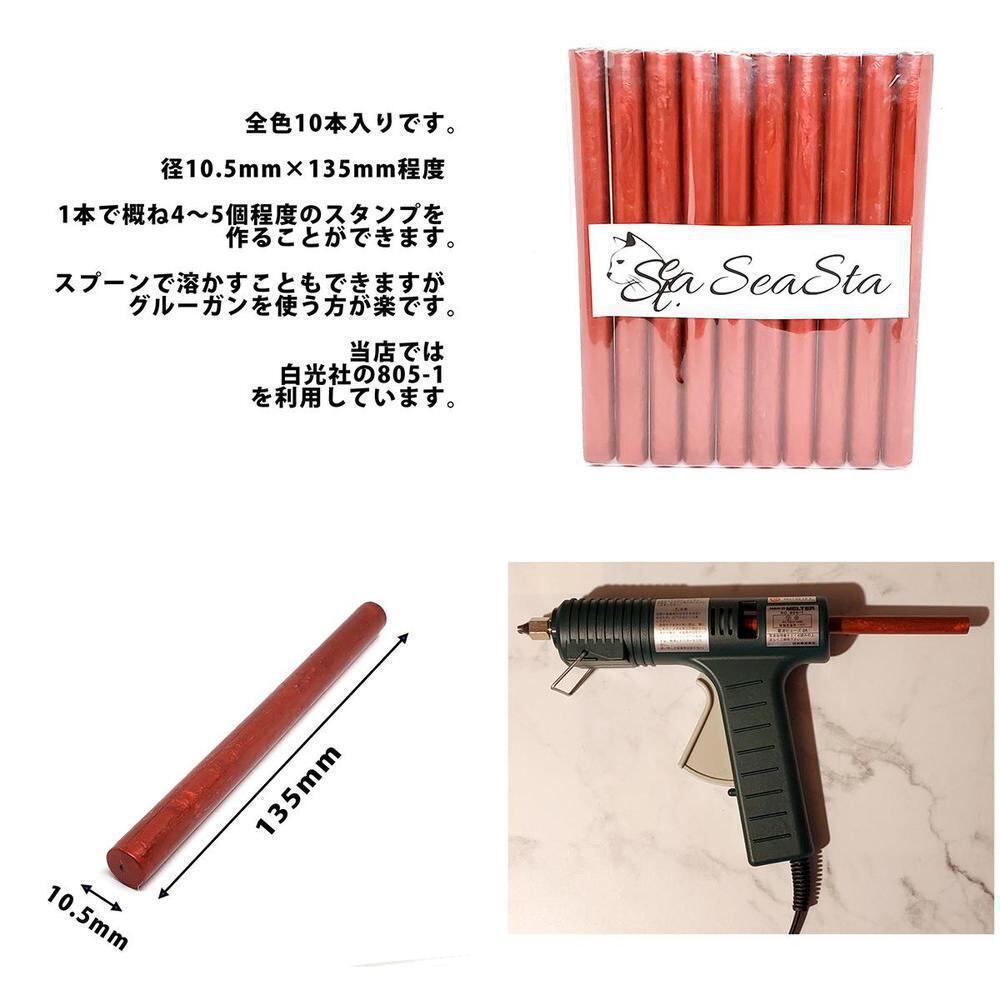 スティックタイプのプシーリングワックスです。10×135mmの10本セットです。